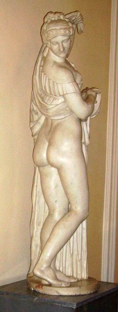 El avance del desnudo femenino y la búsqueda de su belleza específica en el tránsito del S.V al S.IV podría estar en dos esculturas sin atribución (RobAG): una estatuílla de bronce de Berea (Macedonia) con turbante y, fundamentalmente, en la copia romana de un torso de mármol conservado en Nápoles. Estas dos estatuas aportan la desnudez total a la figura femenina a finales del siglo V, además de incorporar al contrapposto de Policleto el diseño la acentuación del arco de la cadera («déhanchement«).