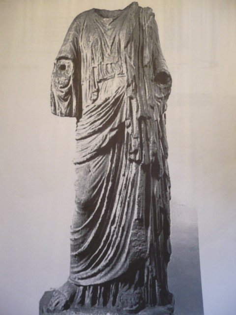 Copia de un original hacia 400, con un thalí cruzado por encima del chitón e himatión colgado del hombro izquierdo. Presenta la novedad de situar un brazo por detrás del cuerpo mientras en el otro la mano habría sostenido una espada.