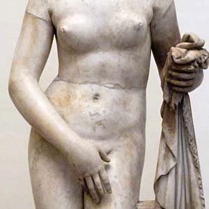 Praxiteles será el conquistador para el arte escultórico griego de la belleza en el desnudo de la mujer y lo será gracias a sus estatuas de esta diosa, para ello busca crear un nuevo tipo de estatua en esencia femenina.