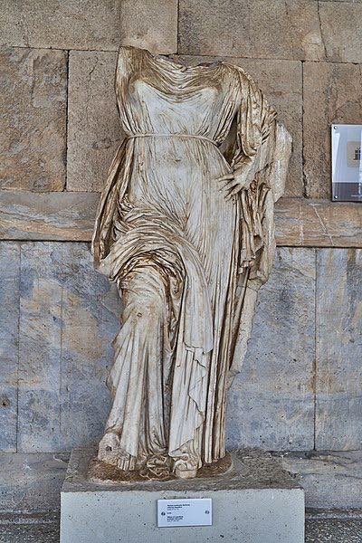 De finales del siglo V existen referencias a diferentes estatuas en las que se la representa en diferentes posturas, sin llegar a suponer éstas avances significativos en cuanto a su calidad o importancia como género iconográfico. Menciono las siguientes: